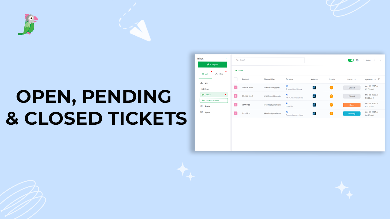 The differences between open, pending, and closed tickets