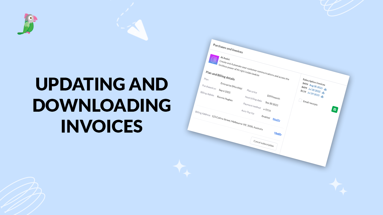 Update billing information in tawk.to